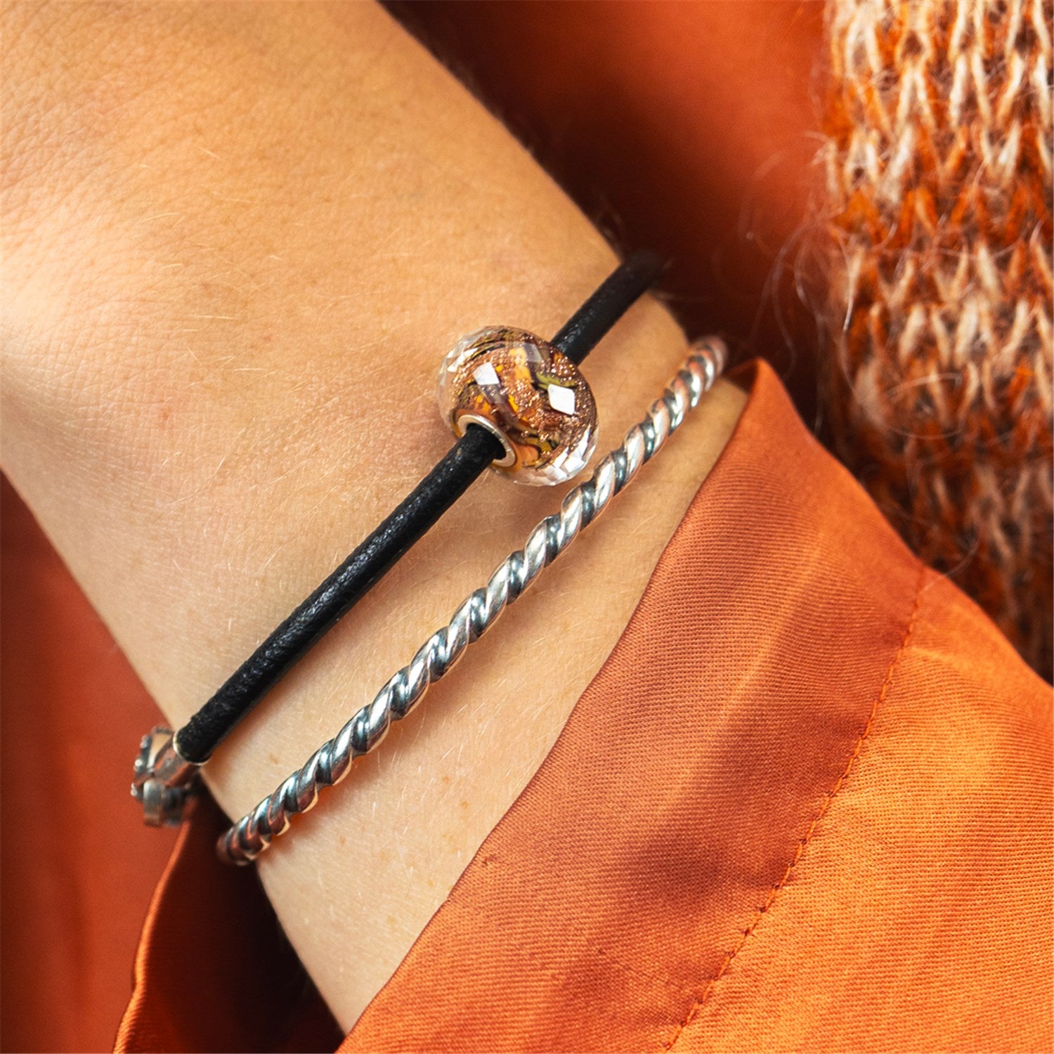 This limited edition faceted glass bead glows with golden light, capturing the beauty and mystery of the world beneath your feet.