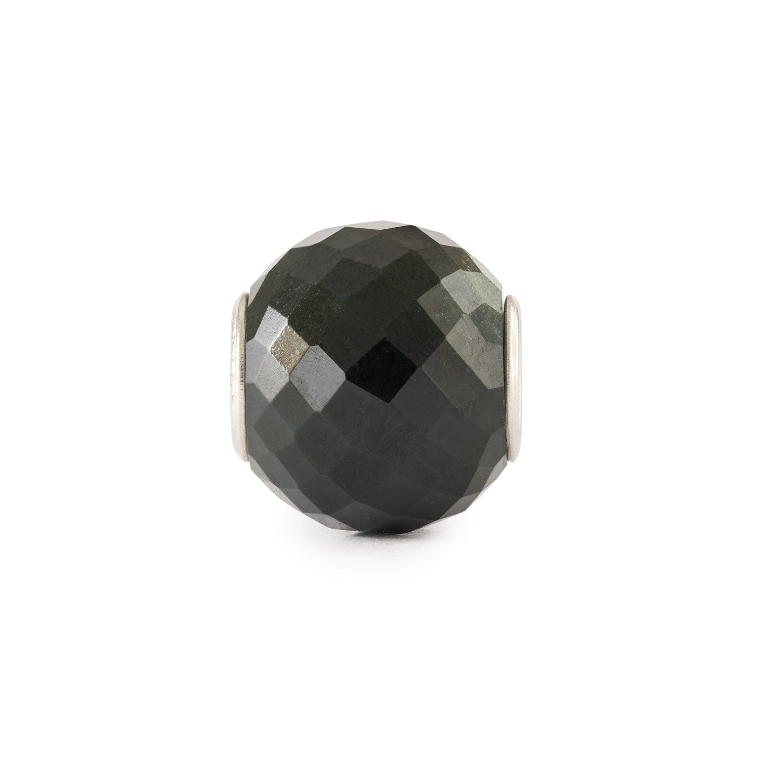 Round faceted stone of Green Chalcedony with a sterling silver lining.