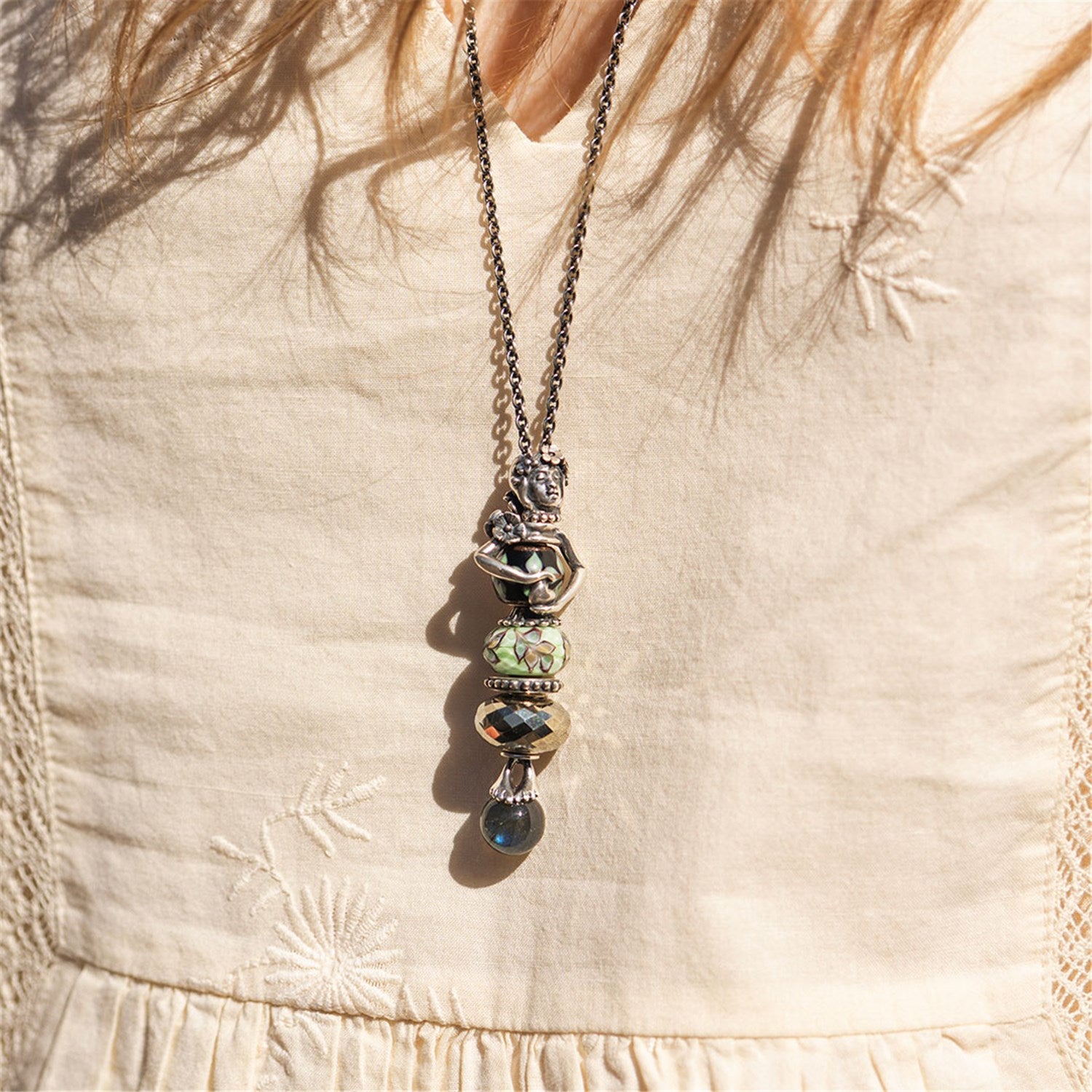 This extraordinary Fantasy Necklace is more than a piece of jewellery - it’s a playful and personal experience. Crafted with elegant silver details and a graceful labradorite gemstone base, it offers the perfect space to showcase your favourite beads and play with colors, textures and patterns.